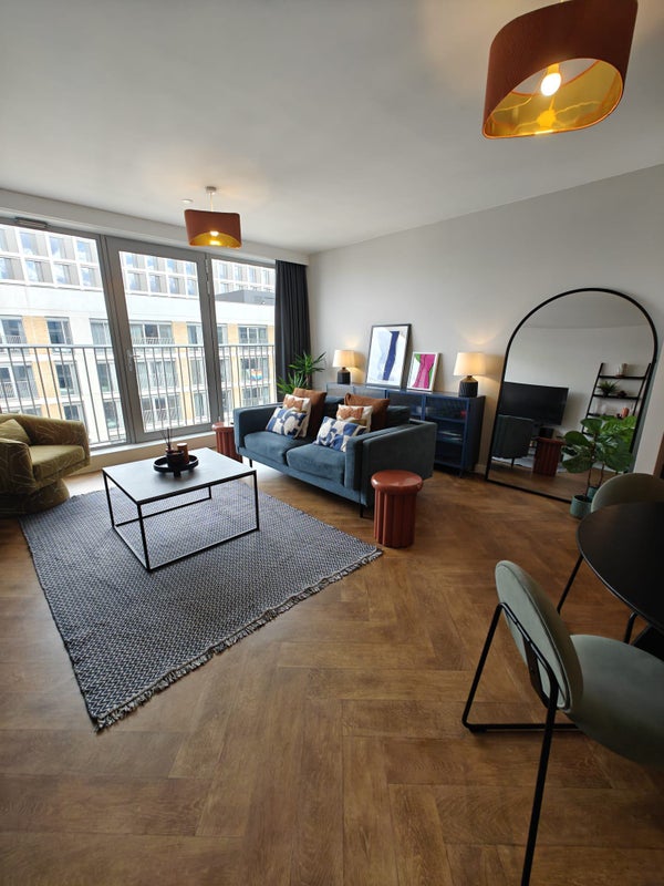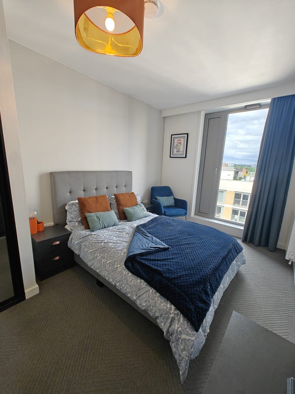 The available room in this apartment is well-furnished and designed for comfort. The overall feel of the space is modern and inviting, with a focus on practicality for the residents. Shared spaces such as the residents fitness studio, rooftop terraces, TV lounge, and co-working spaces offer a sense of community and relaxation. The atmosphere of the flat is welcoming and conducive to both relaxation and productivity.