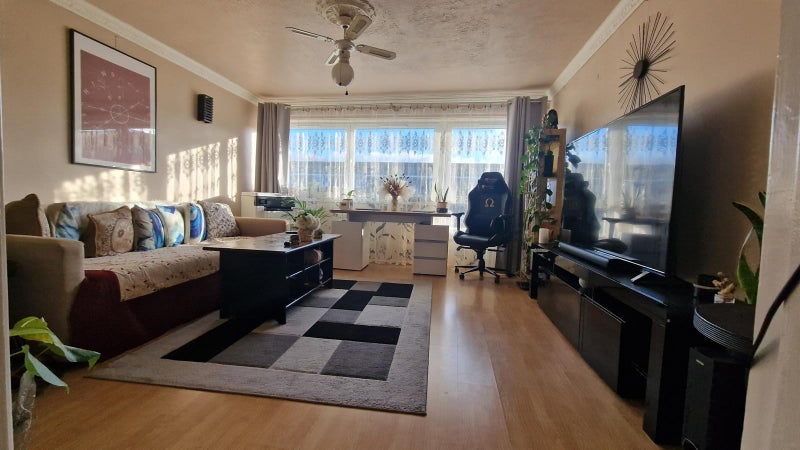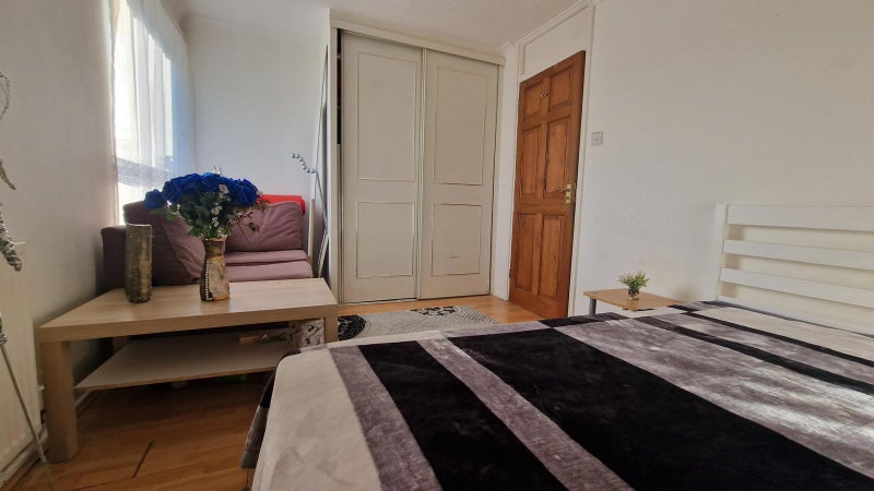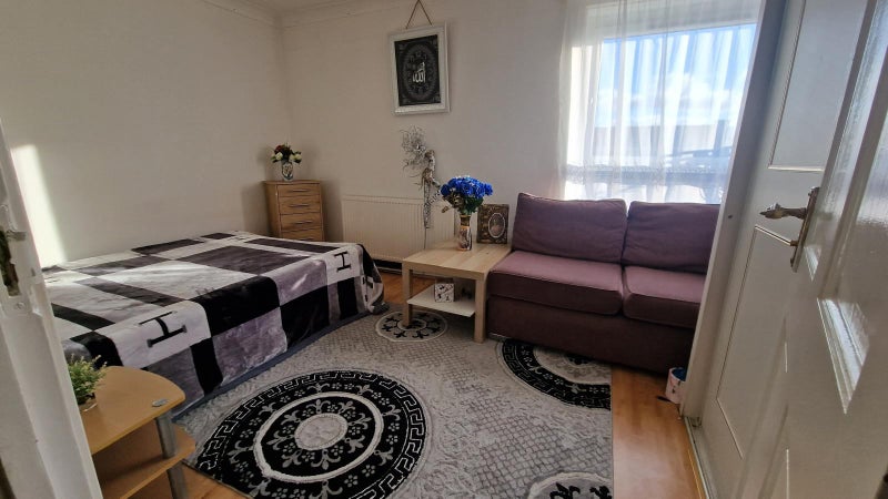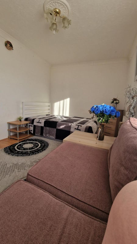 This 2-bedroom duplex flat offers a cozy living space with shared common areas on the first floor and private rooms on the second floor. The available room is furnished with essential items like a bed, cupboard, couch, and side tables. The flatmates, a young, social couple who are chefs, seek a professional individual who values cleanliness, organization, and respect in a peaceful environment. The flat is situated near supermarkets, pubs, and restaurants, making it a convenient location for daily needs and leisure activities.