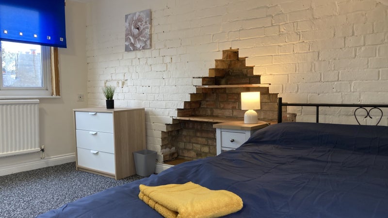The available double room is fully furnished with a new bed, duvet, and sheets, as well as plenty of storage options and bedside cabinets with lamps. The shared spaces, including the kitchen and living area, are designed for comfort and practicality. The atmosphere of the flat is welcoming and clean, with double-glazed windows, unlimited broadband, and heating and hot water available 24/7. The maintenance team is also on hand for any issues that may arise.