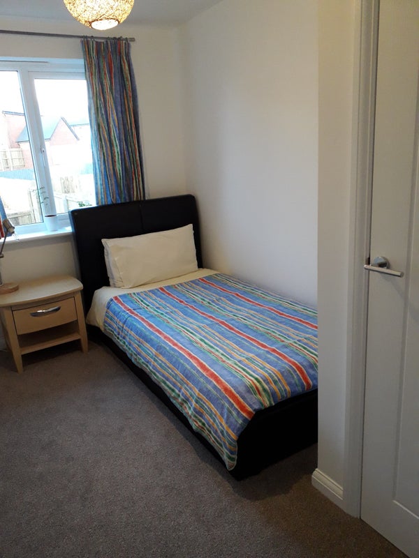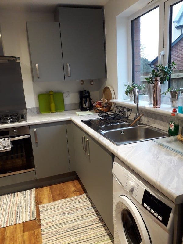 This new build home offers 2 bedrooms for rent to students or professionals, with prices starting from £550 per month. The available rooms include a large double ensuite furnished at £700 per month and a single furnished room at £550 per month. The property does not allow smoking, pets, working from home, or parties. Free unlimited parking is available on the road. The shared kitchen is fully equipped with appliances and utensils, and fiber broadband is included. The area is very quiet, cleaned frequently to a high standard. While students are welcome, the location is about 4 miles from the university, with limited bus services for public transport.