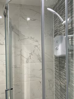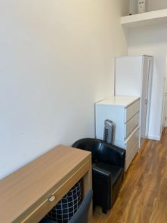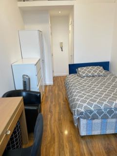 The studio apartment features a comfortable double bed, an own private shower room, double wardrobes, a table and chair, and wireless broadband internet. The space is designed with modern and bright decor, complemented by wooden flooring. The fitted kitchen includes a washing machine, providing practicality for residents. The overall atmosphere of the flat is cozy and functional, ensuring a comfortable living experience for tenants.