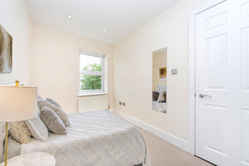 This three-bedroom apartment is ideal for two unrelated sharers and one guest, situated on the first and second floors of a period house. The property features large windows that allow natural light to fill the space. Located in a vibrant area with independent shops and eateries, it is close to Camden Town and Primrose Hill, known for their cultural attractions and dining options. Nearby parks like Primrose Hill and Hampstead Heath offer green spaces for relaxation and outdoor activities. The apartment boasts high ceilings, light wooden floors, a well-appointed kitchen with modern appliances, and a spacious living room with garden views. The second floor includes two double bedrooms, an extra room for guests or a study, and a generously sized tiled bathroom.