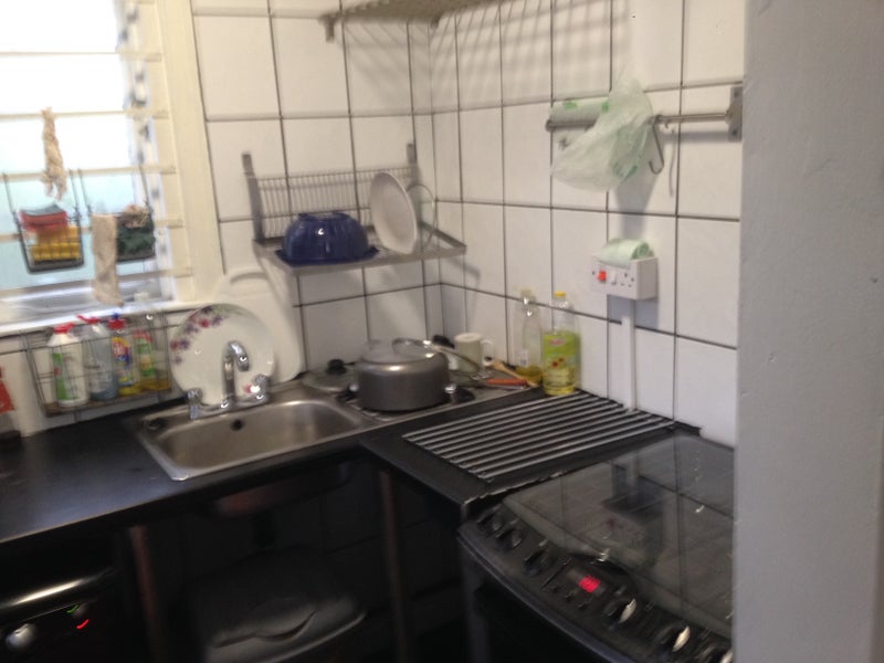 Each bedroom is carpeted and furnished with Double IKEA Mattresses, Metal IKEA Bed Frames, large Desks, Swivel Office Desk Chairs, Guest Chairs, Clothes Hanging Units, Coat Rails, Chests of Draws, Bookshelves, Bins, Blackout Blinds, and Fire detector/Alarm Sounder units. The communal lounge features 2 Sofas, 4 Armchairs, Coffee Tables, and a Game Friendly LG 50-inch Plasma TV. The bathrooms are well-equipped with baths, showers, W.C., bidet spray, washbasins, mirrors, and toiletry storage. The kitchen is equipped with 2 Cookers, a Dishwasher, Racking, Dish Drainers, and Recycle Bins. The Dining Room includes a Dining Table, Chairs, 2 Washing Machines, and 2 Tumble Dryers.