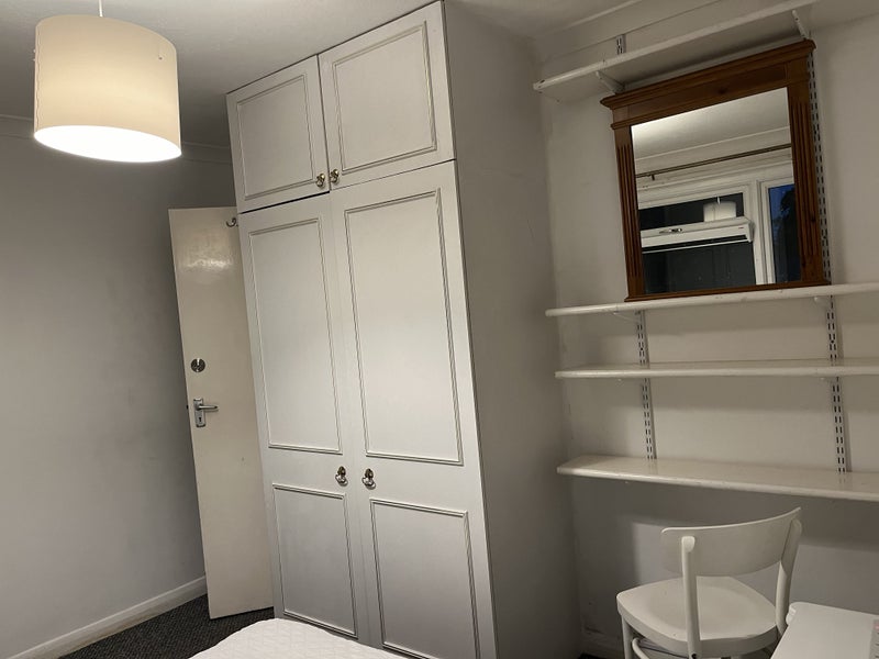 The available room in this flat offers a cozy and functional living space, with a focus on comfort and practicality. The room is furnished with a comfortable double bed, a spacious wardrobe for storage, and a desk for work or study. Residents are encouraged to bring their own bed linens and towels. Shared spaces in the flat include the kitchen, equipped with cooking essentials, and the living room, providing a communal area for relaxation and socializing.