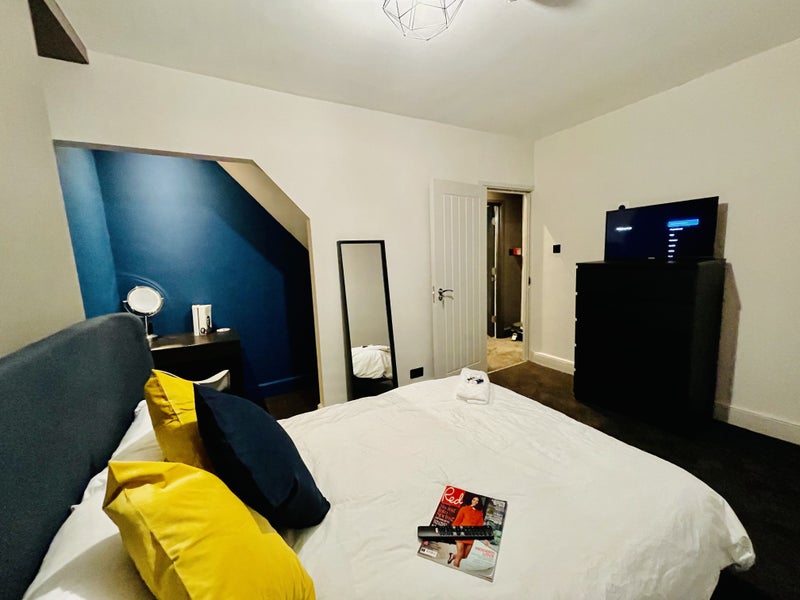 This recently refurbished property is ideal for professionals seeking a comfortable and modern living space. The house offers high-speed wifi, smart TVs in every bedroom and the sitting room, and bills averaging £90-£110 per month for gas, electric, council tax, and water. Each carpeted bedroom is fully furnished with a double bed, smart TV, desk and chair, wardrobe, and chest of drawers. The communal areas include a cozy sitting room with a large smart TV and comfortable sofa, a spacious kitchen with a large dining table, American fridge freezer, oven, hob, dishwasher, and washing machine. Additionally, there is a bathroom with bath, shower, toilet, basin, a shower room, and a separate toilet room with a basin. The property also features a patio garden area and off-street parking.