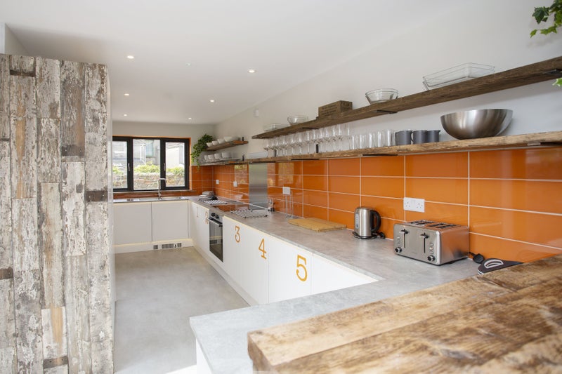 Each room features cutting-edge, pocket-sprung mattresses with 'pillow topped' comfort, USB charging points near the bed, and fast business-grade WIFI. The shared bathrooms offer a luxurious spa shower experience with water-saving features. The kitchen is well-equipped with an induction hob, oven, combination oven/microwave, dishwasher, fridges, freezers, washing machine, and tumble dryer. The overall atmosphere of the flat is comfortable, modern, and practical, with a focus on providing a cozy living space for residents to enjoy.