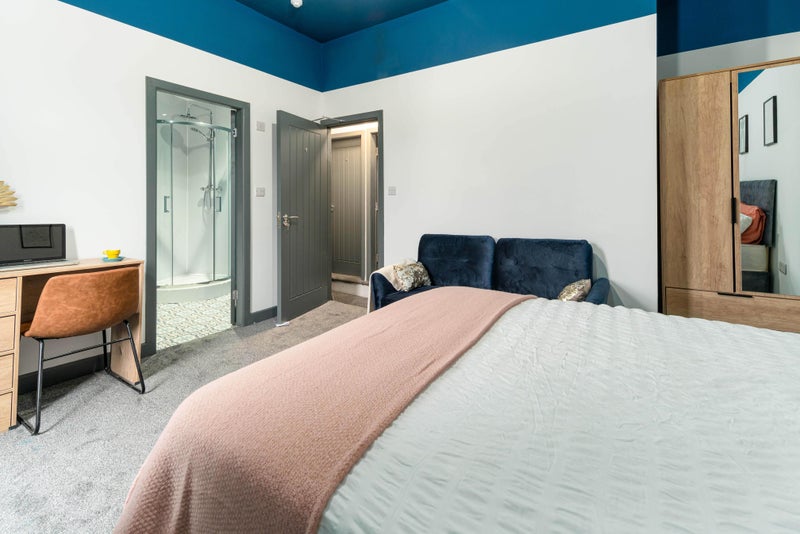 Welcome to a professional and post-grad friendly living space where all bills are included and the property is professionally cleaned twice a month. This high-spec ensuite room offers luxury and convenience for residents, located just a short distance from Bolton Town Center. The room features a full ensuite with a drench shower, a double bed with a comfy mattress, desk, drawers, and wardrobe. The property boasts a prime location in a quiet neighborhood close to parks and outdoor spaces, with ample on-street parking and easy access to bus routes and the train station. High-speed internet is available throughout the property, perfect for streaming and gaming. The communal areas provide a central hub for dining and socializing, including a TV, dining area, and lounging space. The kitchen is well-equipped for foodies, with dedicated storage for each resident and all necessary utensils for a seamless move-in experience.