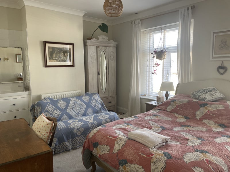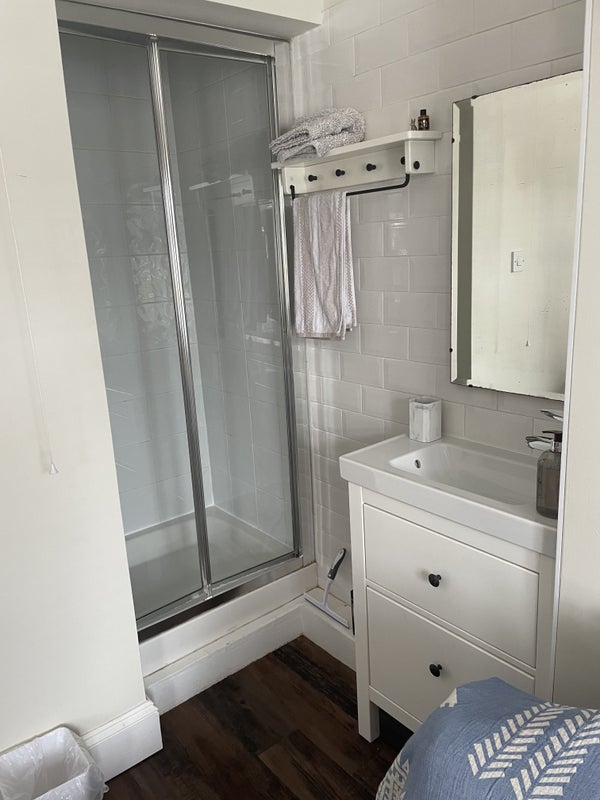 The available double room is well-lit and spacious, with an en-suite shower and basin for convenience. While the desk shown in the pictures may be relocated to the landlord's bedroom, the room offers a comfortable and practical living space. Shared spaces in the house provide a cozy atmosphere for residents to relax and unwind after a long day.