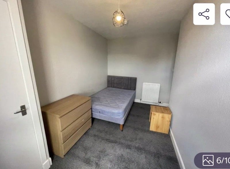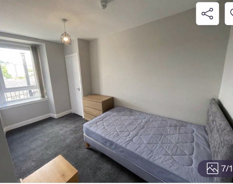 The available bedroom in this flat provides a comfortable and functional living space. The furnishings, including the bed, wardrobe, and drawers, offer convenience and storage options. The overall atmosphere of the flat is welcoming and conducive to studying or relaxing. The shared kitchen and living room are well-equipped and designed for practical use by the residents. The bathroom is clean and well-maintained, ensuring a pleasant living experience for all occupants.