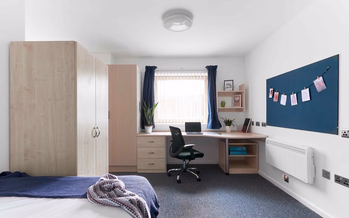 This common ensuite space comes with its own bathroom, private room, shared kitchen and plenty of space for you to study or relax. Here you will get the comfy double bed, a fitted wardrobe, plenty of storage and a desk-chair.