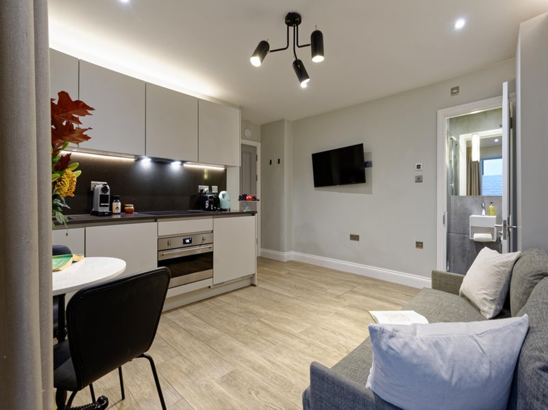 The available rooms at EMPERORS GATE are fully furnished with everything you need for a comfortable stay, including pots and pans for your convenience. The flats feature gorgeous exposed brickwork and bright colors, creating a modern and inviting atmosphere. Shared spaces are well-maintained and designed for practicality, with a full-time property manager on hand to ensure the highest levels of service. Residents can enjoy the peace of mind provided by a full CCTV system and electronic entry, as well as a 24/7 maintenance team for any building issues.