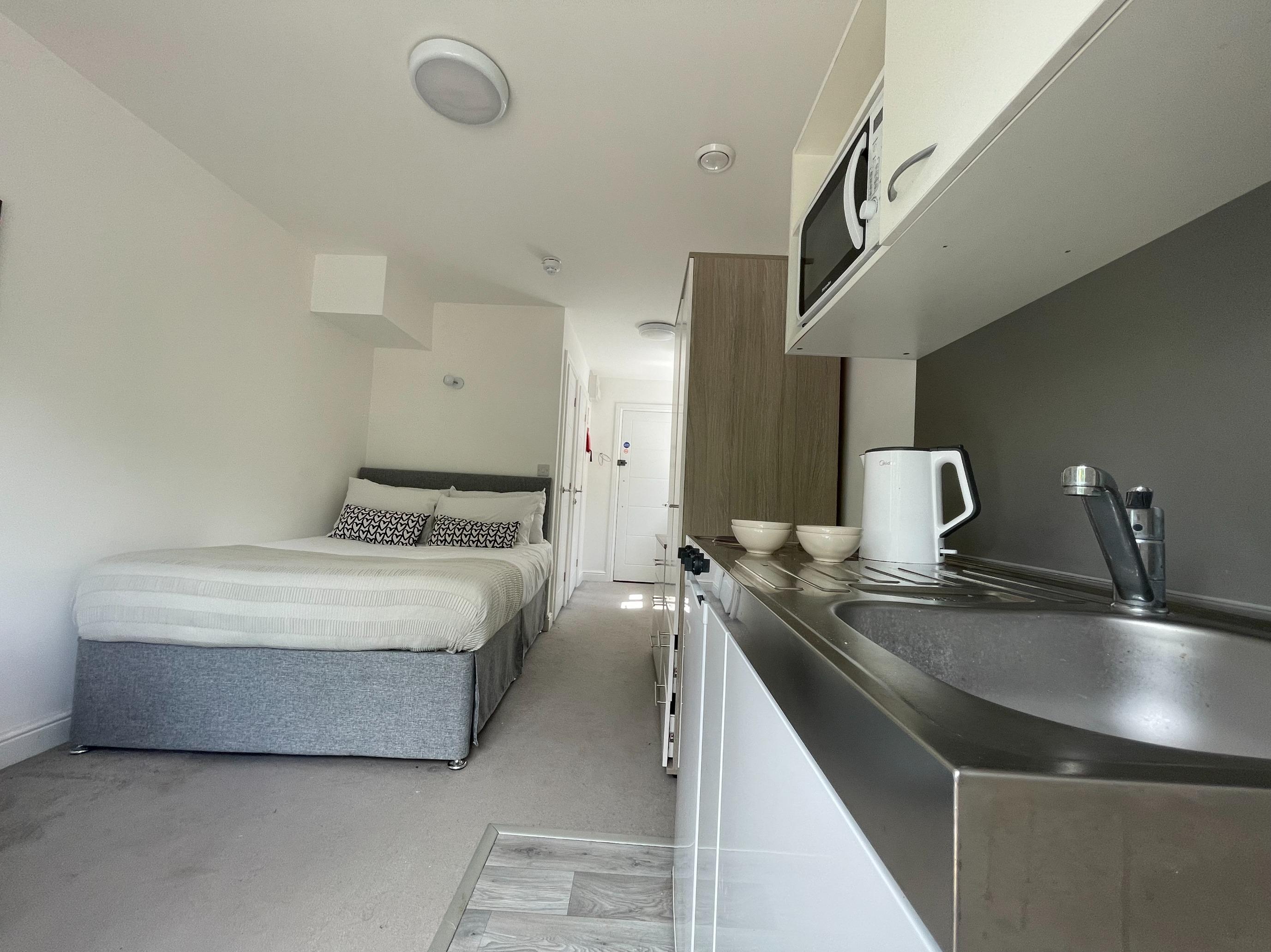 Fully inclusive of bills, this is a modern student block of 25 self-contained studios, each with its own ensuite, kitchen, bedroom and study area.