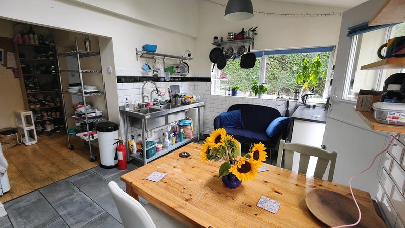 The available double room is well-lit and comes with some built-in furniture and a closet for storage. The overall atmosphere of the house is welcoming and cozy, perfect for residents looking for a comfortable living space. Shared spaces such as the living room, kitchen, and dining area are well-maintained and provide a homely feel. The presence of a friendly Chihuahua adds to the warmth of the house, making it a pleasant environment for animal lovers.
