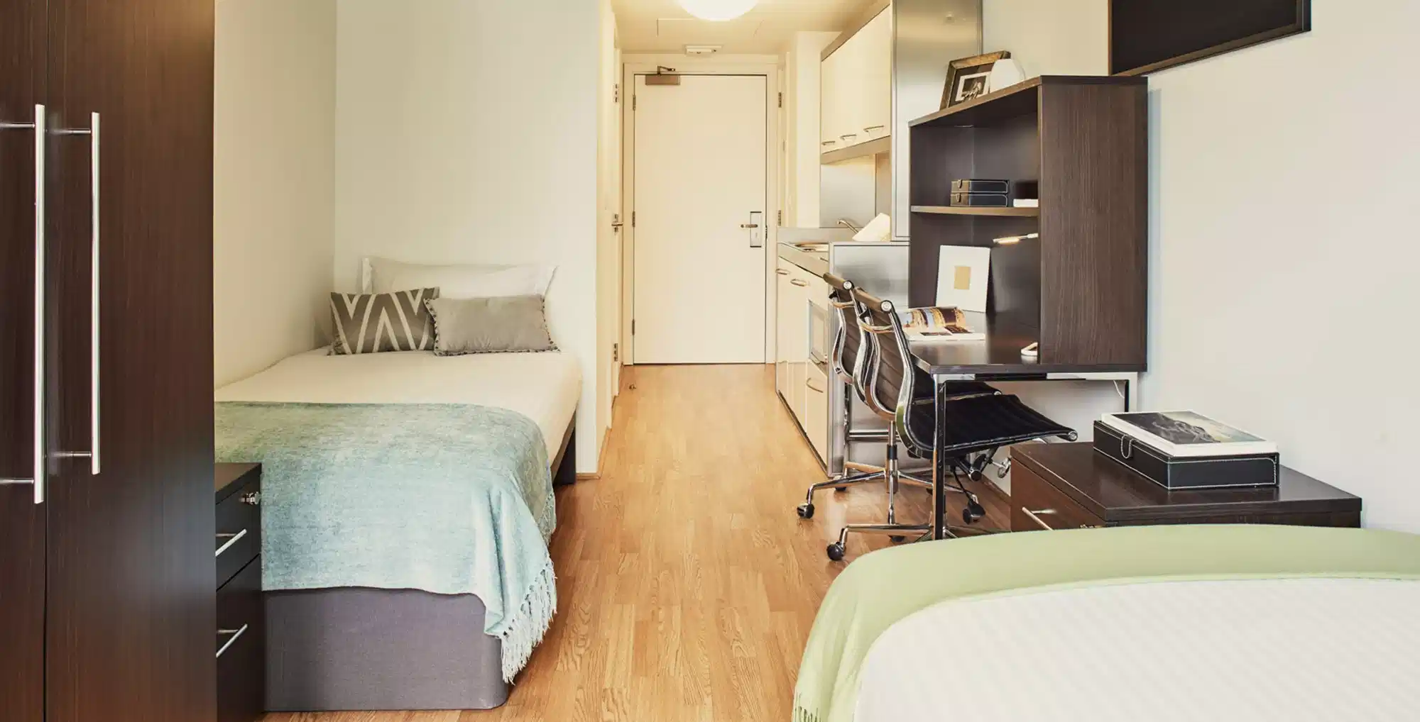 Chapter Portobello provide spacious apartments containing single beds, wardrobes, central heating, desks and chairs. You will also get a communal kitchen and dining area with separate shower rooms. Additional equipment includes a microwave oven, an induction hob, and a fridge. You can stay in the apartment by paying a weekly rent of £343 (INR 40,721). They are further available in two options, which are cited below.