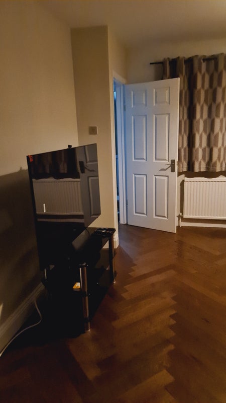 The available double room is tastefully furnished with a new bed, mattress, wardrobe, desk, and chest of drawers, ensuring comfort and functionality for residents. The private bathroom adds an extra level of convenience and privacy. Shared spaces in the house include a well-equipped kitchen, cozy living room with a dining table and sofa, and a driveway for parking. The overall atmosphere of the flat is welcoming and conducive to relaxation after a long day.