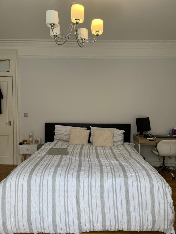 The available double bedroom is well-appointed with modern furnishings and plenty of natural light, creating a cozy and inviting atmosphere. The shared spaces in the apartment are tastefully decorated and designed for both comfort and practicality. Residents can enjoy a spacious living room, a fully equipped kitchen, and three bathrooms for added convenience. The overall feel of the flat is welcoming and conducive to a harmonious living environment.