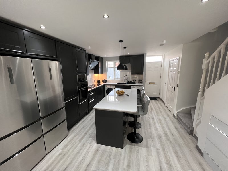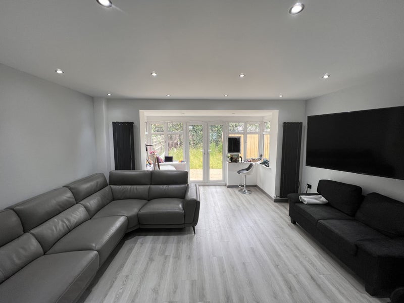 The available double bedroom is spacious and comfortable, with the option for furnished or unfurnished. The shared spaces in the house, including the modern open kitchen, provide a welcoming atmosphere for residents. The overall feel of the space is cozy and practical, ensuring a comfortable living experience for all flatmates.