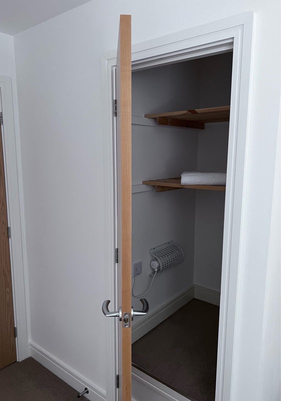 Located in the friendly residential area of Exminster on the outskirts of Exeter, this modern property offers a beautifully presented double room with shared bathroom. The house is conveniently situated near bus stops with easy access to Exeter city center. Nearby amenities include a bakery, Tesco store, pharmacy, pubs, and cafes. The newly built mid-terrace house features a private back garden and two parking spaces, with gas central heating and hobs. The room comes furnished with a comfortable double bed, storage closet, and the option for additional furniture. All bills are included except for internet, making this an ideal living space for a professional individual.