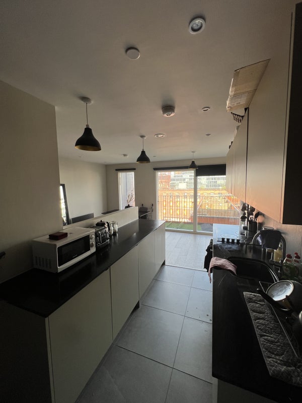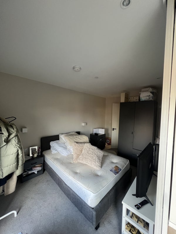 The available double bedroom with an en-suite is well-furnished and designed for comfort. The room provides a cozy atmosphere for relaxation and privacy. The open plan kitchen adds a modern touch to the living space, while the balcony offers a peaceful outdoor area for residents to enjoy. The flat boasts a welcoming atmosphere, with shared spaces that are practical and comfortable for everyday living.