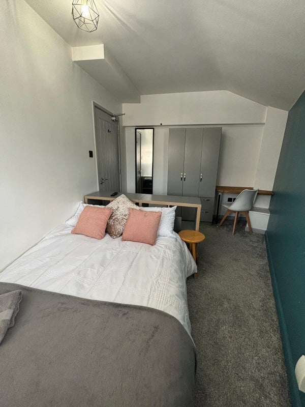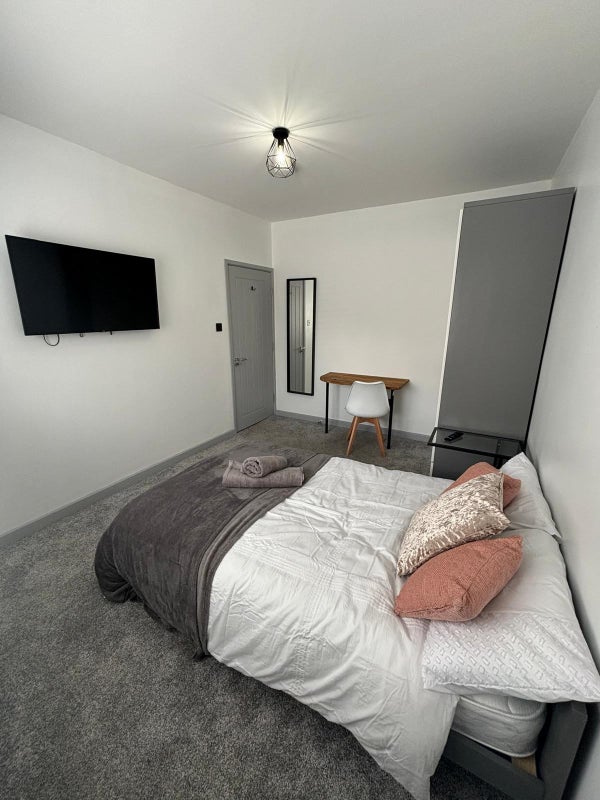 Located near Teesside University, this luxury house offers six stunning, fully furnished double bedrooms for single students. Currently, there are two rooms available - a full-sized double in Room 1 and a compact double in Room 3. Another room, Room 5, will be available at the end of September. The rent for students is £475 per month, while working individuals pay £480 per month, including a council tax contribution. Each room is elegantly painted, equipped with a double bed and new mattress, and furnished with quality furniture. The house features two shared bathrooms, a spacious fitted kitchen with a breakfast bar, a lounge area, two fridge freezers, and a washing machine. Bills are included on a fair usage basis, with council tax covered for students who provide a student exemption certificate.