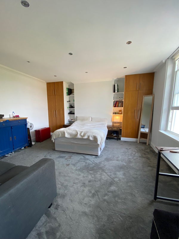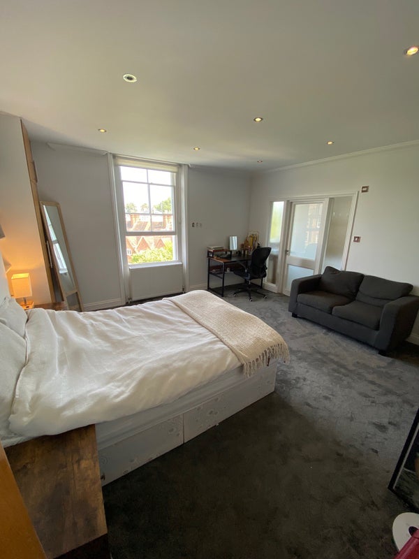 Located just 1 minute away from Belsize Park tube station, this quiet and spacious double room offers a comfortable living space for residents. The property features a large communal living room with roof access, ample storage, and modern amenities such as a washing machine and dishwasher. The monthly bills are approximately £90 per person for a three-way split. The room comes furnished with a bed, desk, office chair, built-in wardrobes, and cabinet. The flatmates, Hana (23) and Lucas (30), are a friendly couple who enjoy music, art, and film. They value good communication and cleanliness in communal areas to maintain a peaceful living environment.
