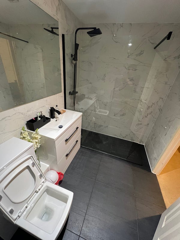 The spacious double room comes equipped with a double bed, a 4-door wardrobe with mirrors, and a study/work desk. The house features a newly refurbished bathroom, a fully furnished living room, and kitchen, as well as a generous garden perfect for hosting summer BBQs. The atmosphere is welcoming and comfortable, with a focus on cleanliness and tidiness in shared areas like the living room, bathroom, and kitchen.