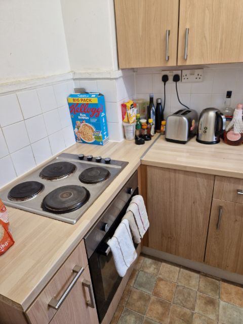 The available double room is thoughtfully furnished with a bed, bedside table, and wardrobe, ensuring residents have everything they need for a comfortable stay. The overall feel of the space is cozy and inviting, with ample natural light and a peaceful atmosphere. Shared spaces in the flat are well-maintained and designed for practicality, offering residents a comfortable environment to relax and socialize in.