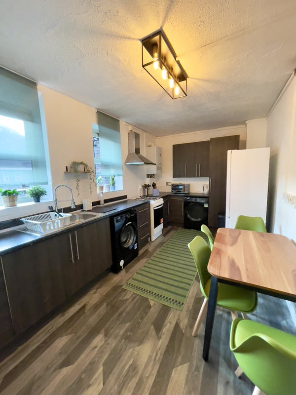 The available rooms in this flat are spacious and come fully furnished with comfortable double beds, providing a cosy retreat after a long day. Some rooms feature built-in wardrobes for convenient storage solutions, ensuring a clutter-free living space. The large dine-in kitchen serves as the heart of the home, perfect for communal cooking and socializing. The overall feel of the space is modern, stylish, and designed for both comfort and practicality.