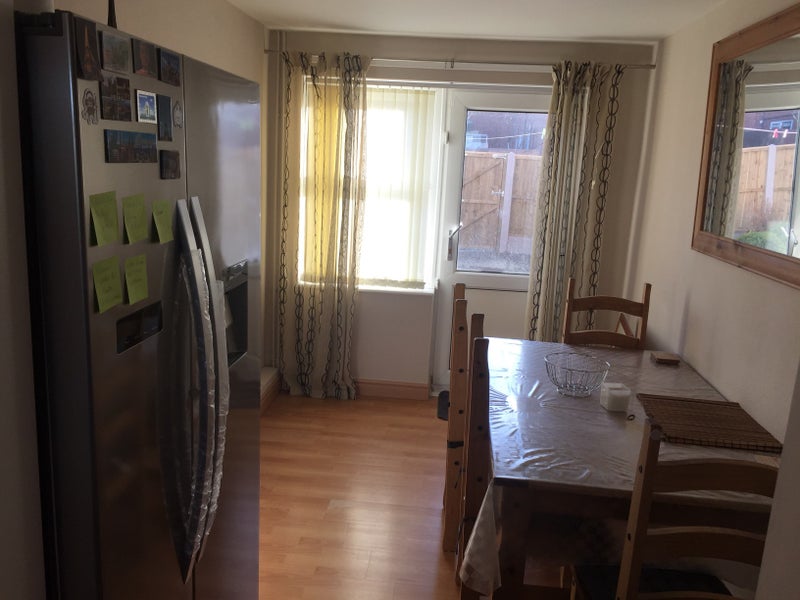 The available room in this property is well-appointed and furnished for comfort. The house exudes a cozy atmosphere, with a focus on practicality and functionality for residents. Shared spaces like the kitchen/dining room are spacious and inviting, perfect for socializing or relaxing after a long day. The overall feel of the space is welcoming and conducive to a comfortable living experience. Residents can enjoy the convenience of modern amenities and a well-maintained living environment.