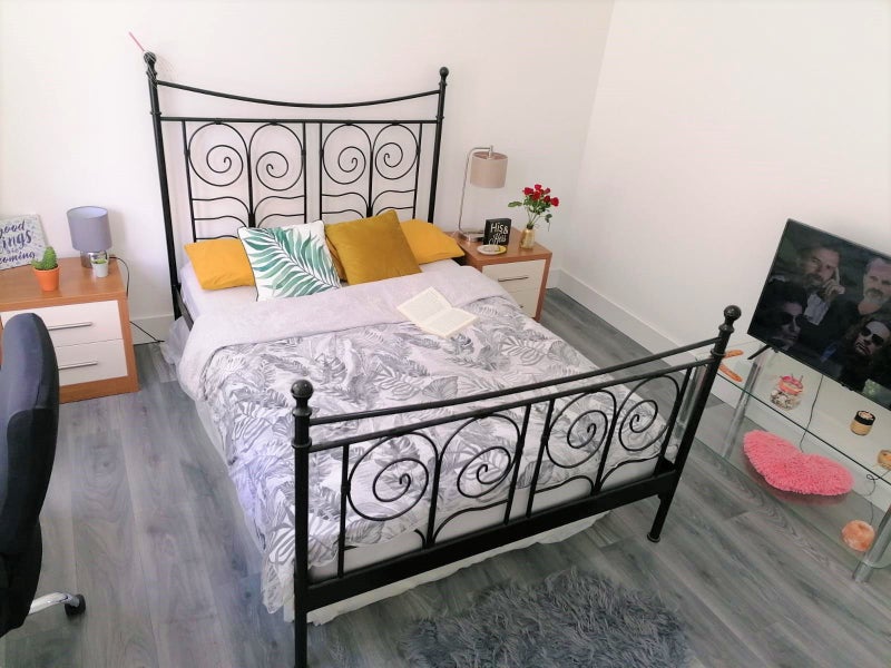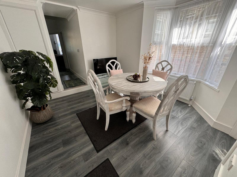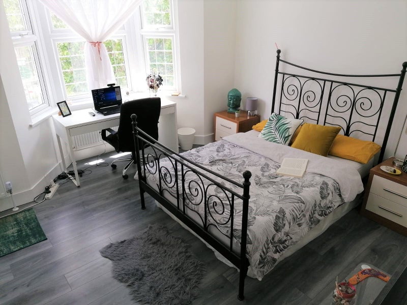 Join our fabulous household in a modern house with 2 full bathrooms and a rear patio! The rent includes water, council taxes, and unlimited ultrafast Wi-Fi. Gas and electricity are not included, averaging £20 per month per person. The living space is spacious with a dining area, separate kitchen, and a living room. There are two full bathrooms and a massive rear patio with a garden set. The fully furnished room includes a double bed, bedside tables, a desk, an office chair, and a triple wardrobe. The flatmates are full-time professionals from diverse backgrounds and ages.