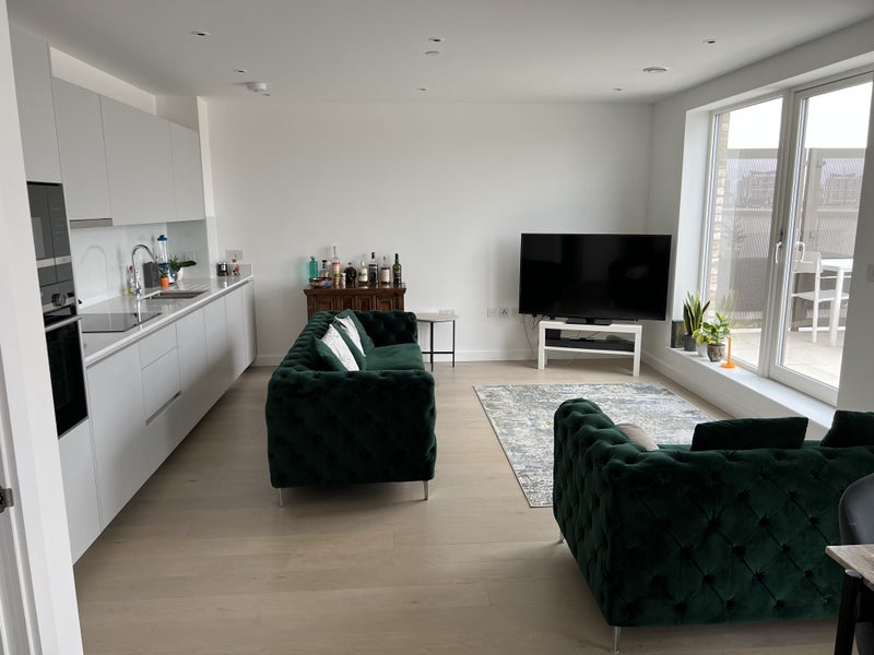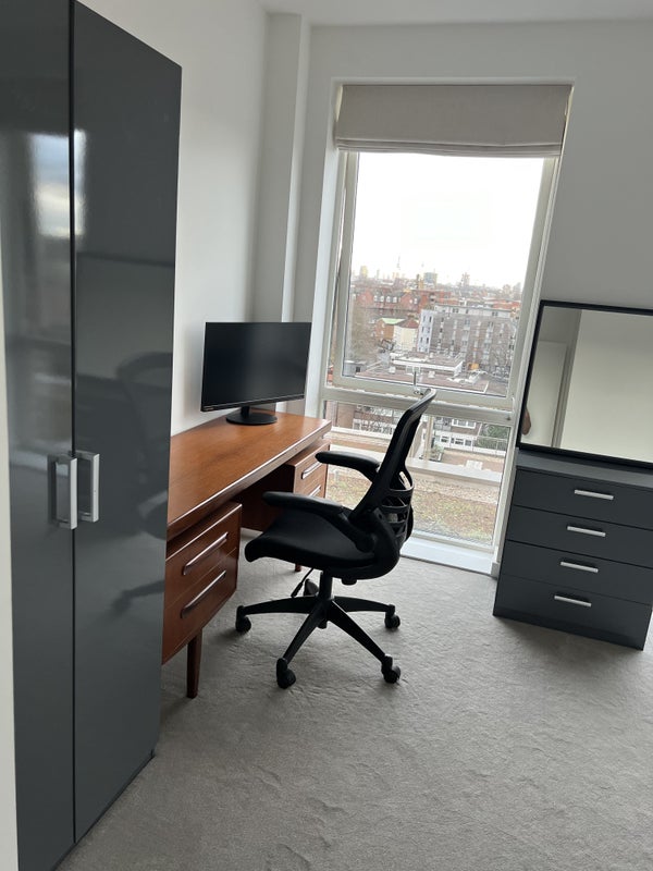 Located just off Camberwell Road, this new build two-bedroom flat offers a double bedroom with a large terrace on the 7th floor, providing stunning views of the city. The flat also features a shared roof terrace for relaxation and socializing. The room comes fully furnished, including a desk, and is conveniently situated next to the guest bathroom. The kitchen is well-equipped with modern appliances, including a washer dryer, and the main room boasts air conditioning for added comfort. The rent is approximately £1,350 per month, inclusive of all bills, high-speed internet, and a cleaner. The flatmate is a social and respectful gay professional working in fintech who only works from home on Fridays.