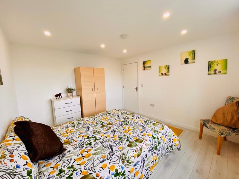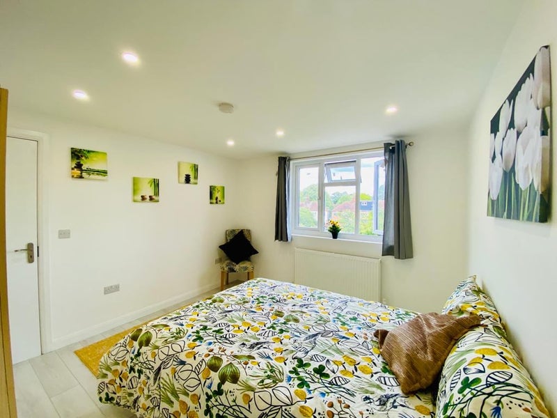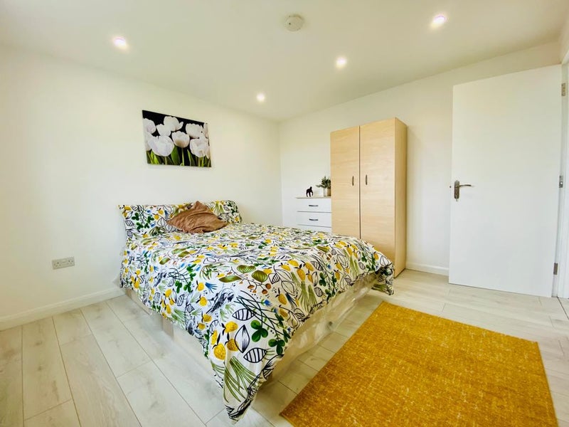 The double room for single use is part of a property that features a spacious garden with a fish pond, an open plan kitchen, and a living room. The room is furnished for comfort and practicality, providing a cozy atmosphere for residents. Shared spaces are well-maintained and designed to promote relaxation and social interaction among flatmates. All bills are included in the rent, ensuring a hassle-free living experience.