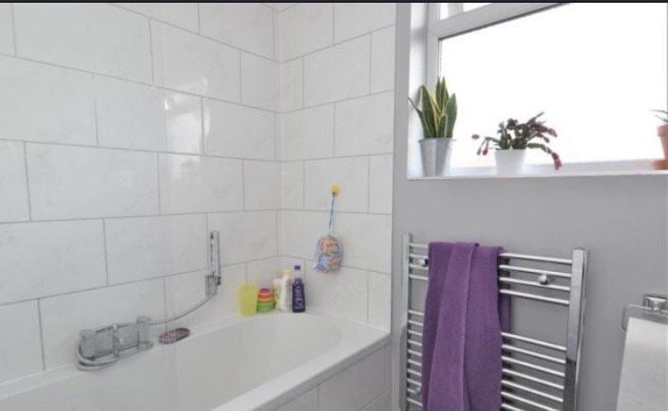 This beautiful recently renovated house offers a small double room for rent, furnished with a divan bed, new memory foam mattress, open wardrobe, drawers, and shelves. Additional storage options are available under the stairs, in the loft, or in the shed. The house is shared with two friendly girls and two rescue dogs, so potential housemates must be dog-friendly. There are two bathrooms in the house, one upstairs with a bath and one downstairs with a shower, both equipped with toilets. The fully equipped kitchen and shared living room with a TV, corner sofa, and desk provide comfortable living spaces.