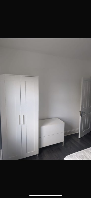 The shared living space includes a cozy living room with a 55-inch wall-mounted smart TV, a shared bathroom with a large power shower and a roll-top bath, and a second downstairs WC. The well-equipped kitchen features a large fridge freezer and ample cupboard space. Residents can also enjoy the large garden and conservatory area, ideal for bike storage and laundry drying. The property was completely refurbished in 2017, with all new appliances installed and meticulously maintained. The double bedroom comes furnished with high-end furniture, including a quality bed and mattress, side table, and wardrobe, offering a comfortable and aesthetically pleasing living space.