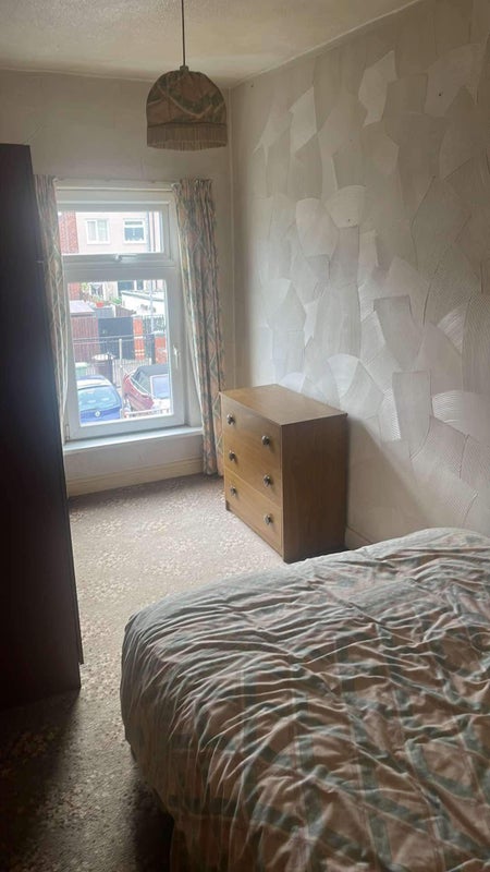 The available room in this house share is tastefully furnished and provides a relaxing atmosphere for the resident. The double bed offers a comfortable sleeping space, while the chest of drawers and wardrobe provide ample storage for personal belongings. The shared living area is spacious and well-lit, creating a welcoming environment for socializing or relaxing. The overall feel of the space is cozy and practical, ensuring that residents feel at home in their surroundings.