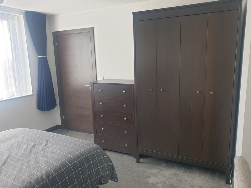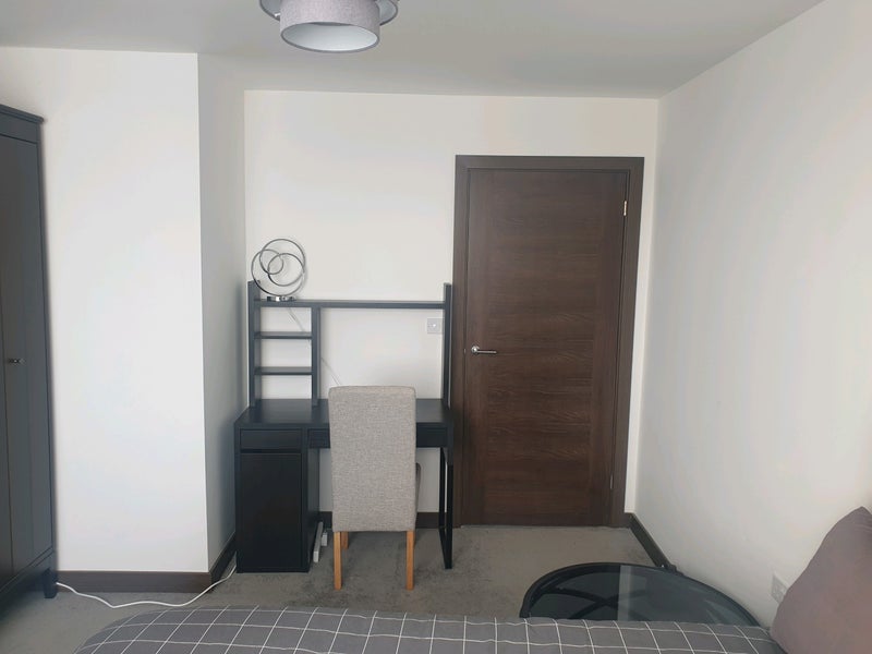 Located in a top floor new build apartment, this property offers a double room with its own en-suite bathroom. The apartment is close to amenities and within walking distance of a bus stop and train station, providing convenient access to transportation. The room is fully furnished with plenty of storage space, and all bills are included in the rent. There is some flexibility on rent for the right tenant or tenants. The apartment is shared with flatmates and may include furry friends.