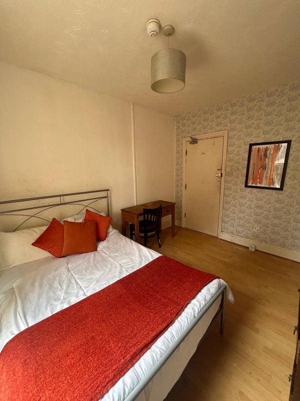 The Double Room 3 is cozy and functional, providing a comfortable living space for a working professional. The furnishings are well-maintained, and the shared areas are kept clean and tidy. The house boasts 3 large and 2 extra-large double bedrooms, along with 3 shared bathrooms, including a shower room on each floor and a bathroom on the ground floor. The property also features a spacious garden with a seating area, perfect for relaxing outdoors.