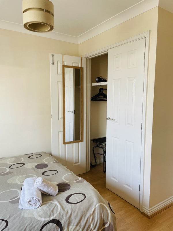 The room is well-equipped with essential furnishings for comfort and functionality. The shared spaces in the flat provide a cozy atmosphere for residents to relax and socialize. The kitchen is spacious and well-equipped for cooking and dining, while the modern bathroom offers convenience and comfort for daily use.
