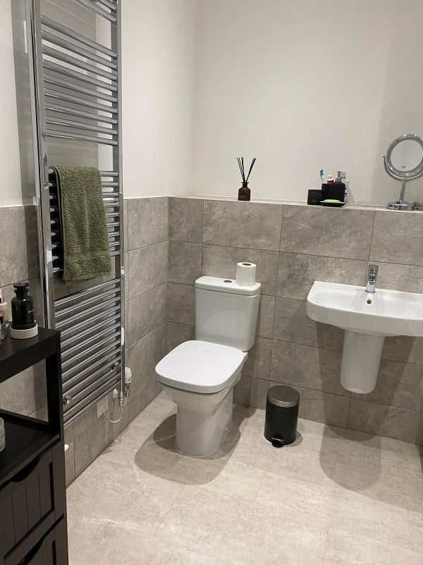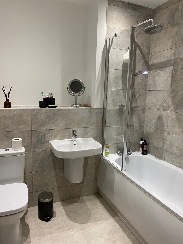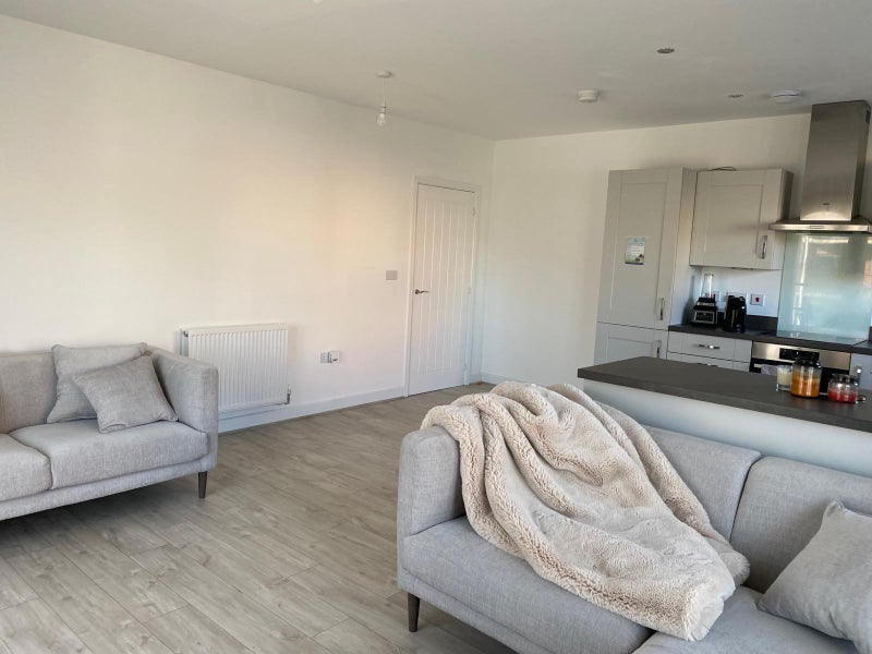The generously sized double room is tastefully furnished with a bed, bedside tables, and a built-in wardrobe, providing ample storage space. The shared flat features a cozy atmosphere, with a focus on comfort and practicality for residents. The apartment is located in the newly developed Ebbsfleet Castle Hill area, offering access to nearby amenities such as tennis courts, parks, a lake, a hotel, and a charming pub with a garden (Spring River).