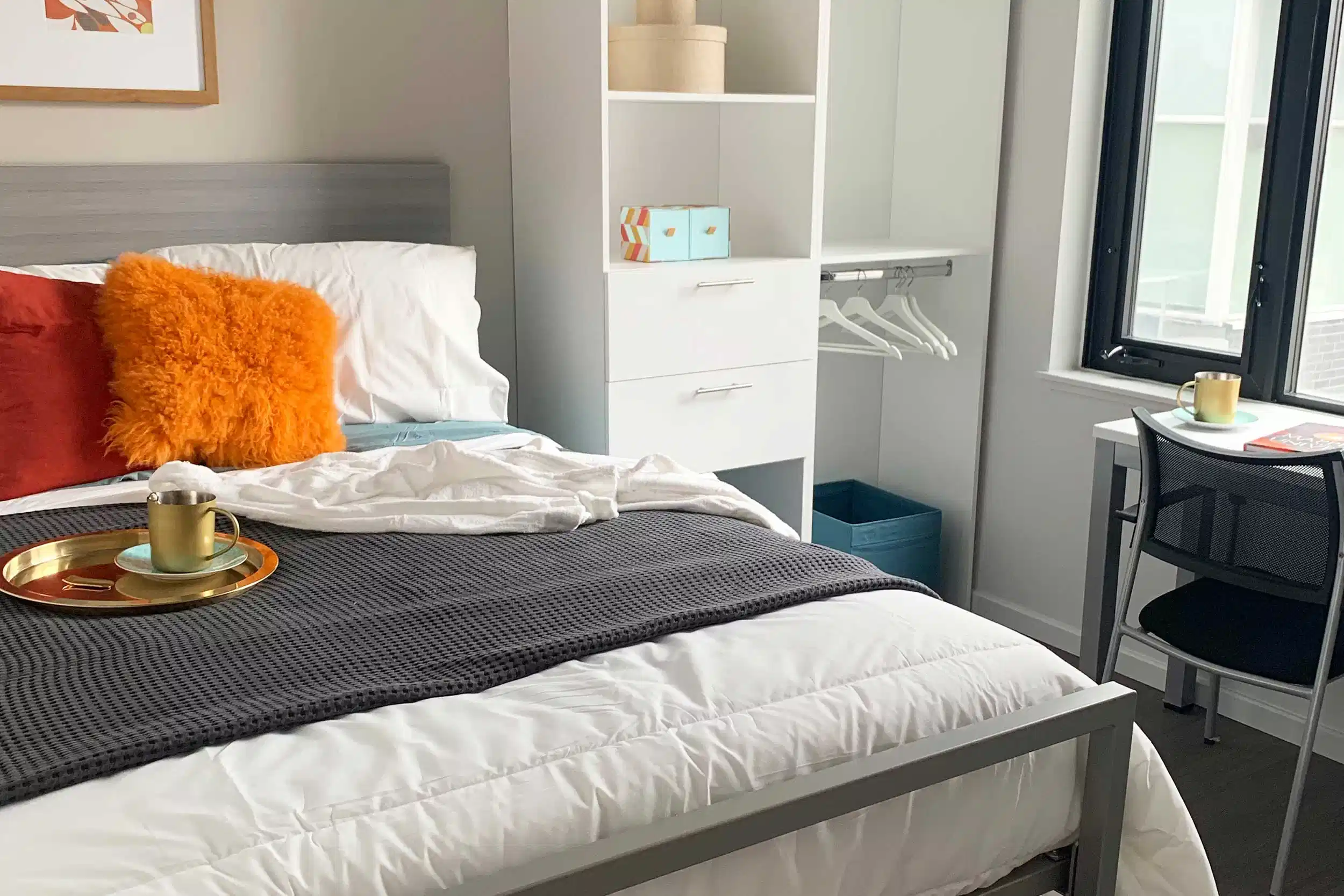 Students who cherish their personal space and want to experience independent living can opt for the single bedroom ensuite. It features two closets, an ensuite bathroom and a dedicated study desk with a chair. Moreover, its living and dining spaces are ideal for enjoying early meals and late-night movies. However, these are available in different categories, which are mentioned below.