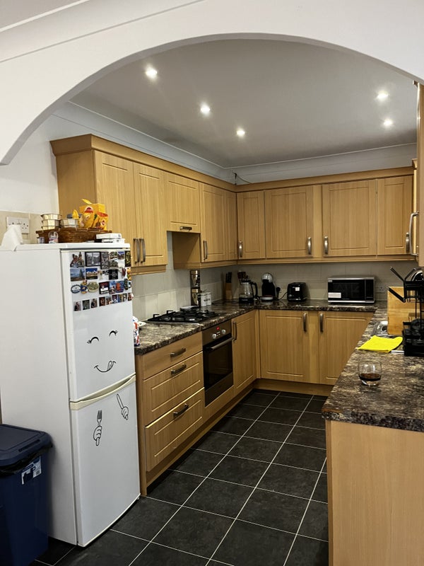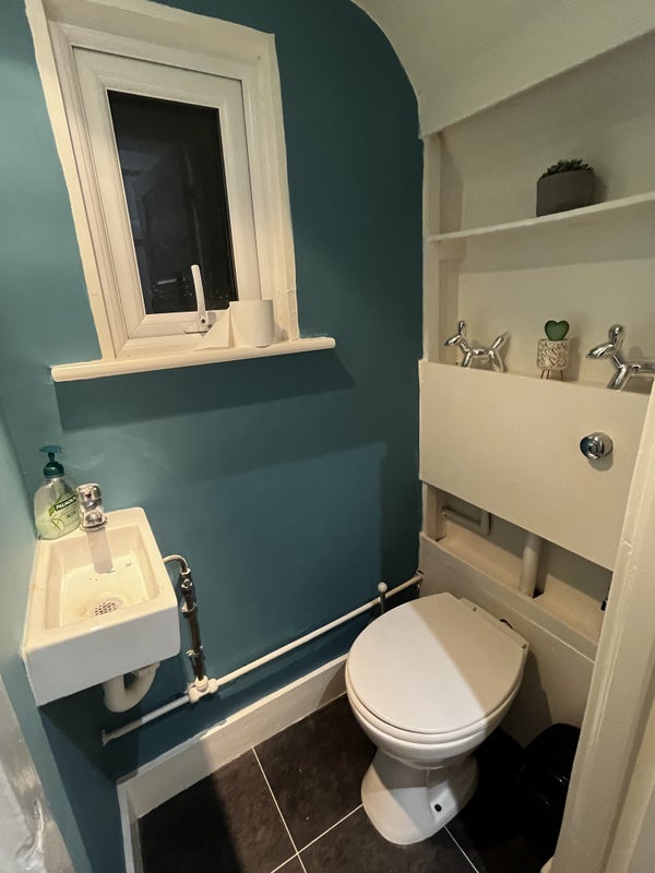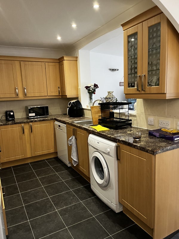The available bedroom is generously sized and can be furnished with new furniture upon rental. The house features shared spaces like the living room, kitchen (equipped with essential appliances), and two bathrooms for added convenience. The atmosphere of the flat is cozy and welcoming, with a spacious garden that includes a sitting terrace, shed, and greenhouse. The overall feel of the space is homely and practical, ensuring residents' comfort and enjoyment of the shared areas.