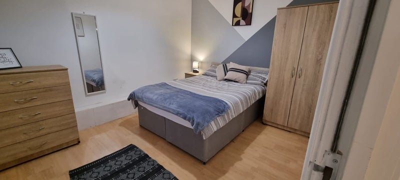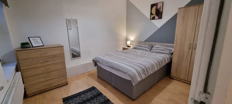 The available double rooms are fully furnished with quality furniture, including a double bed with a luxury mattress, chest of drawers, double wardrobes, and a large mirror. The apartment, with a total of 5 bedrooms, has recently been redecorated with fresh new décor, two new shower rooms, brand new central heating, and new double-glazed windows. The atmosphere of the flat is comfortable and practical, with a focus on providing a cozy living space for residents.