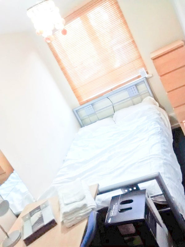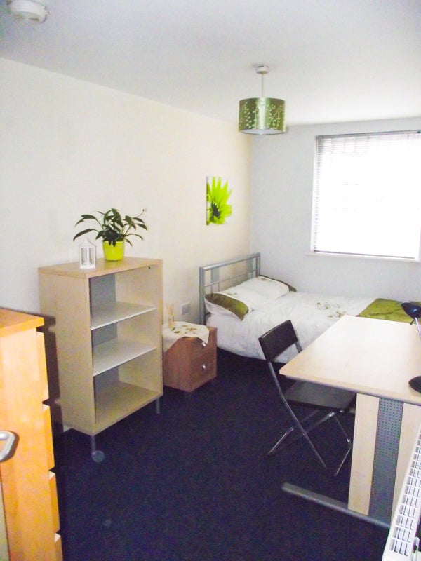 The available double rooms in this apartment are spacious and fully furnished, featuring a bed, study desk, lamp, wardrobe, bookshelf, and chest of drawers. The communal areas include a modern kitchen equipped with essential appliances like a washing machine, oven, microwave, and fridge freezer. The dining area and lounge are perfect for relaxing or socializing, with a coffee table and comfortable leather sofas. The modern bathroom and separate shower room ensure convenience for all residents, while high-speed wireless internet access is available in every room.