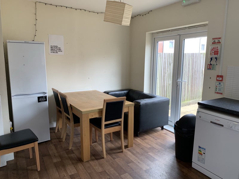 Each room in this house is fully furnished with a double bed, study desk, study chair, wardrobe with mirror, and bedside table, providing a cozy and functional living space for residents. The shared areas, including the kitchen/dining area, are spacious and well-maintained, creating a welcoming atmosphere for flatmates to socialize and relax. The house is designed to prioritize comfort and practicality, making it an ideal place for students to focus on their studies and enjoy their downtime.