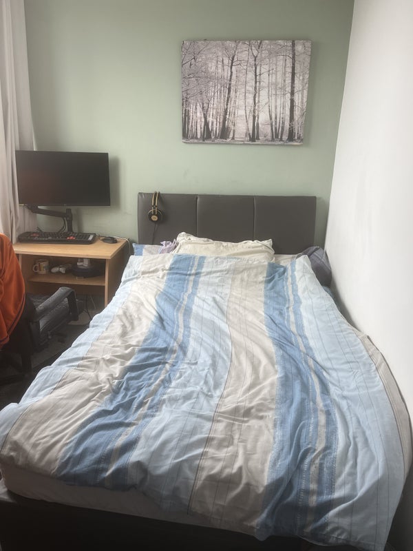 This well-presented fully furnished double room is available in a 3-storey townhouse on South Rd S6. The room includes a double bed with an orthopedic mattress, a double wardrobe with a full-length mirror, a chest of drawers, a bedside table, a desk and chair, and blackout curtains. The property features 2 shower rooms, a modern kitchen, a lounge/front room with comfortable seating and a flat-screen HD TV, a separate utility room with laundry facilities, lofty views, and a sunny back yard. A cleaner visits fortnightly to maintain the communal areas. The house is located near cafes, bars, shops, and restaurants in Crookes and Walkley, with a supermarket and bus stop conveniently close by.