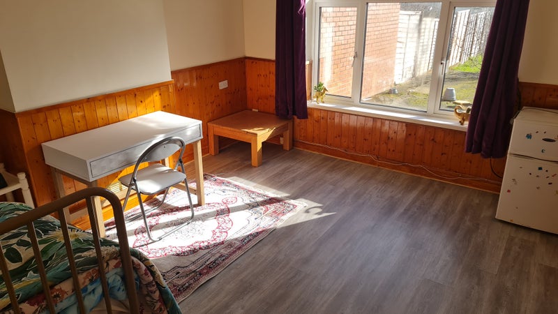 Located just a few minutes' drive from the city center, this property offers a large double room with all bills included. The room is furnished and comes with a fridge, separate entrance, own bathroom, and additional storage area/room, all with wooden flooring. The room is available for a professional female single occupancy at £115 per week, with a room deposit of £400. The property is conveniently situated with a bus stop just outside the house, and Peterborough town center is within a short walking distance of 10-15 minutes.