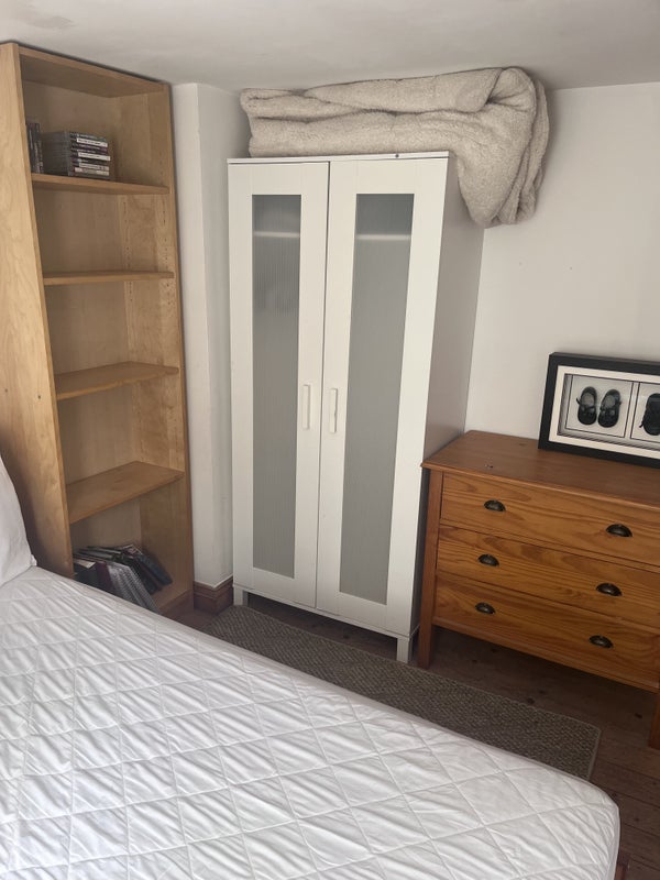 The private double bedroom in this house is comfortable and well-furnished, offering a cozy retreat for the resident. The shared kitchen and bathroom are well-maintained and provide all the necessary amenities for daily living. The atmosphere of the flat is warm and inviting, with a focus on practicality and comfort. The presence of the house cat adds a touch of charm to the living space, creating a homely feel for the residents.