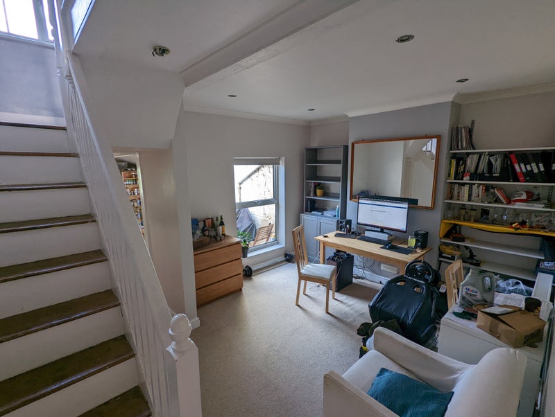 The available room is well-sized and comfortable, with plenty of storage options and a desk for work or study. The shared living and dining spaces are cozy and inviting, with amenities like an Xbox, media laptop, and TV for entertainment. The atmosphere of the flat is welcoming and organized, with a focus on cleanliness and social interaction. The double glazed sash windows help minimize road noise from the nearby A-road, ensuring a peaceful living environment.