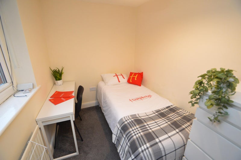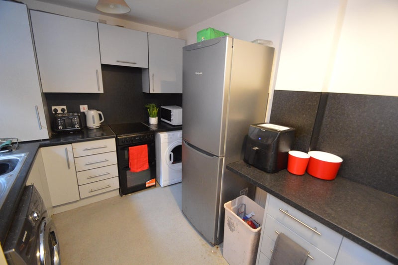 The house boasts a modern and comfortable living space, with a fully fitted kitchen equipped with essential appliances like a washing machine, fridge freezer, oven/hob, toaster, and kettle. The spacious living/dining area is furnished with a 3-seater sofa, 2 armchairs, and a dining table with chairs, creating a cozy atmosphere for residents to relax and socialize. There are also 2 shower rooms in the property, each featuring a shower cubicle, W/C, and hand basin for convenience.