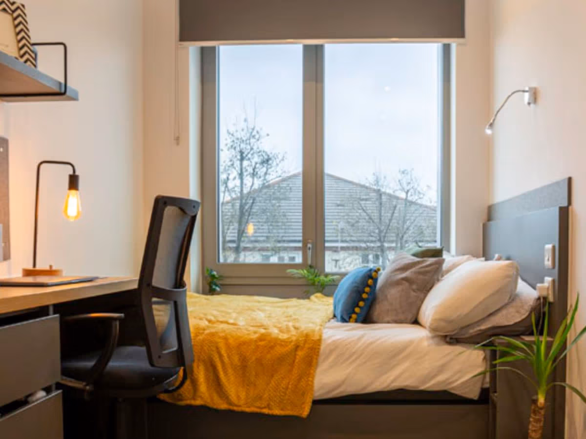 Great Court is known as one of the nicest student spots in the UK and has rooms for all budgets. Every room comes with a bed, storage, and a desk.